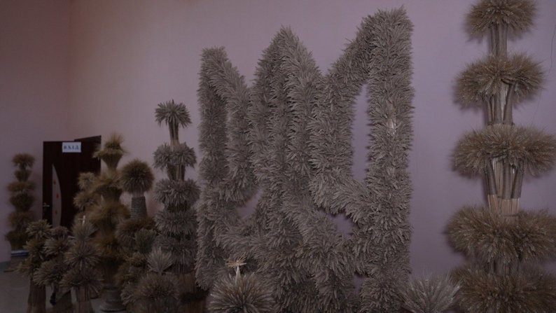 Тризуб, який майстрині із Мирного виготовили із 15 тисяч колосків. Його могли внести до книги рекордів України. Суспільне Вінниця/Андрій Нєстєров