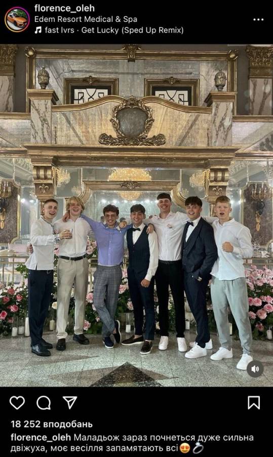 «На початку жовтня влаштував весілля у лухарі готелі, де тінейджери співали російський реп, розкидуючи по сцені стодоларові купюри», — написав Лохматов.