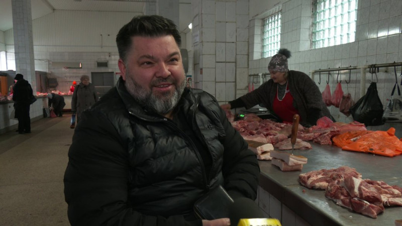 Черги шикуються й на ринку за ковбасними та м'ясними виробами. Деякі покупці купують готову продукцію, інші, як пан Валерій — надають перевагу сирому м'ясу.