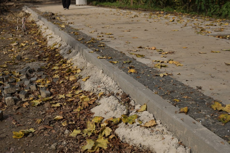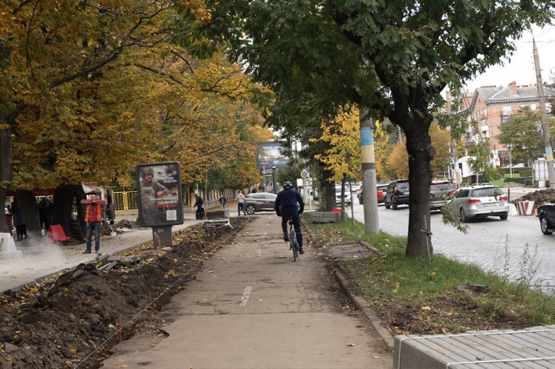 Домітрюк каже, наразі підрядник почав встеляти широкоформатну бетонну бруківку на тротуарі. Також поза тротуаром буде зелена зона з місцем для перепочинку.