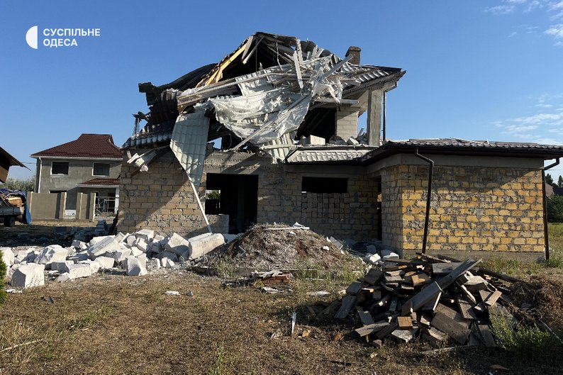 Пошкоджений будинок у передмісті Одеси внаслідок дронової атаки РФ ввечері 17 серпня 2025 року. Суспільне Одеса