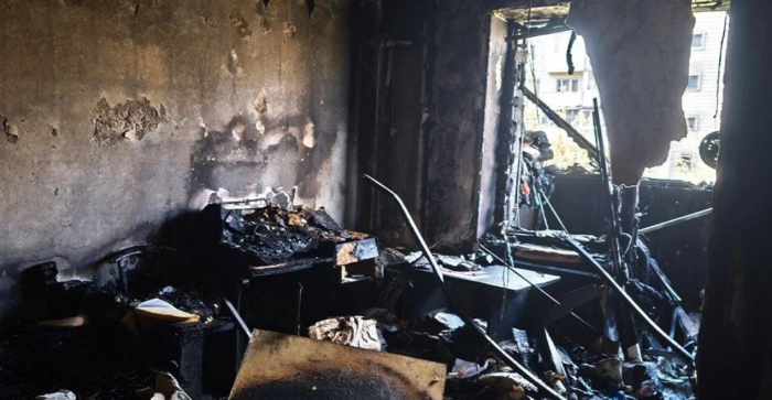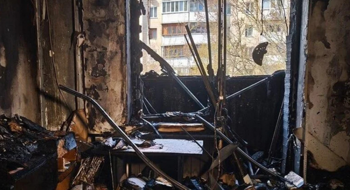 Перед тим, як влаштувати стрілянину у Голосіївському районі Києва, стрілець вчинив пожежу у квартирі. Одна кімната вигоріла вщент, інші постраждали менше. 4-місячне немовля отруїлося чадним газом у квартирі поряд з тією, яку підпалив стрілець. Від його госпіталізації батьки відмовились.