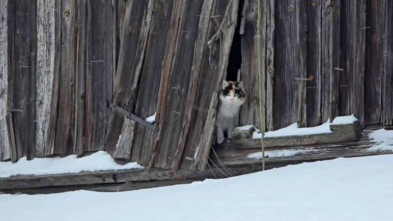 Один з котів Миколи Фесюри з Марсу на Чернігівщині. Суспільне Чернігів"Сніжинки, Дід Мороз, Снігуронька ж була, вата, дощик".