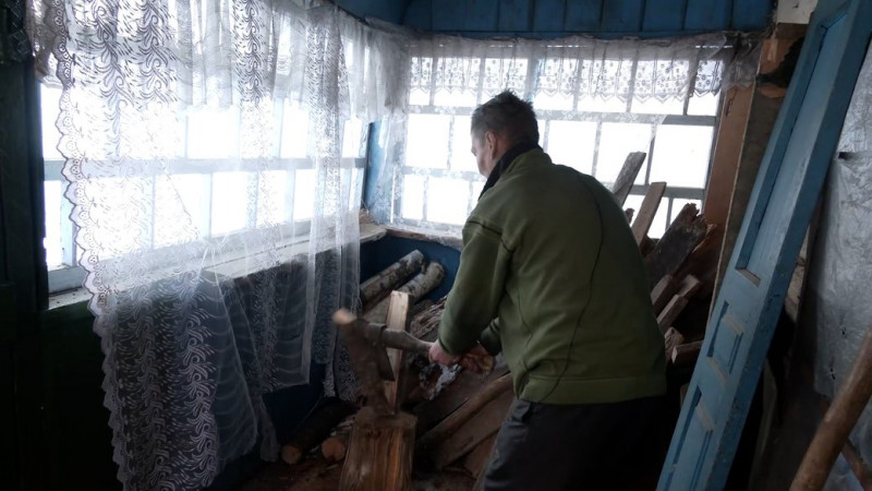 Микола Фесюра з Марсу на Чернігівщині рубає дрова. Суспільне Чернігів