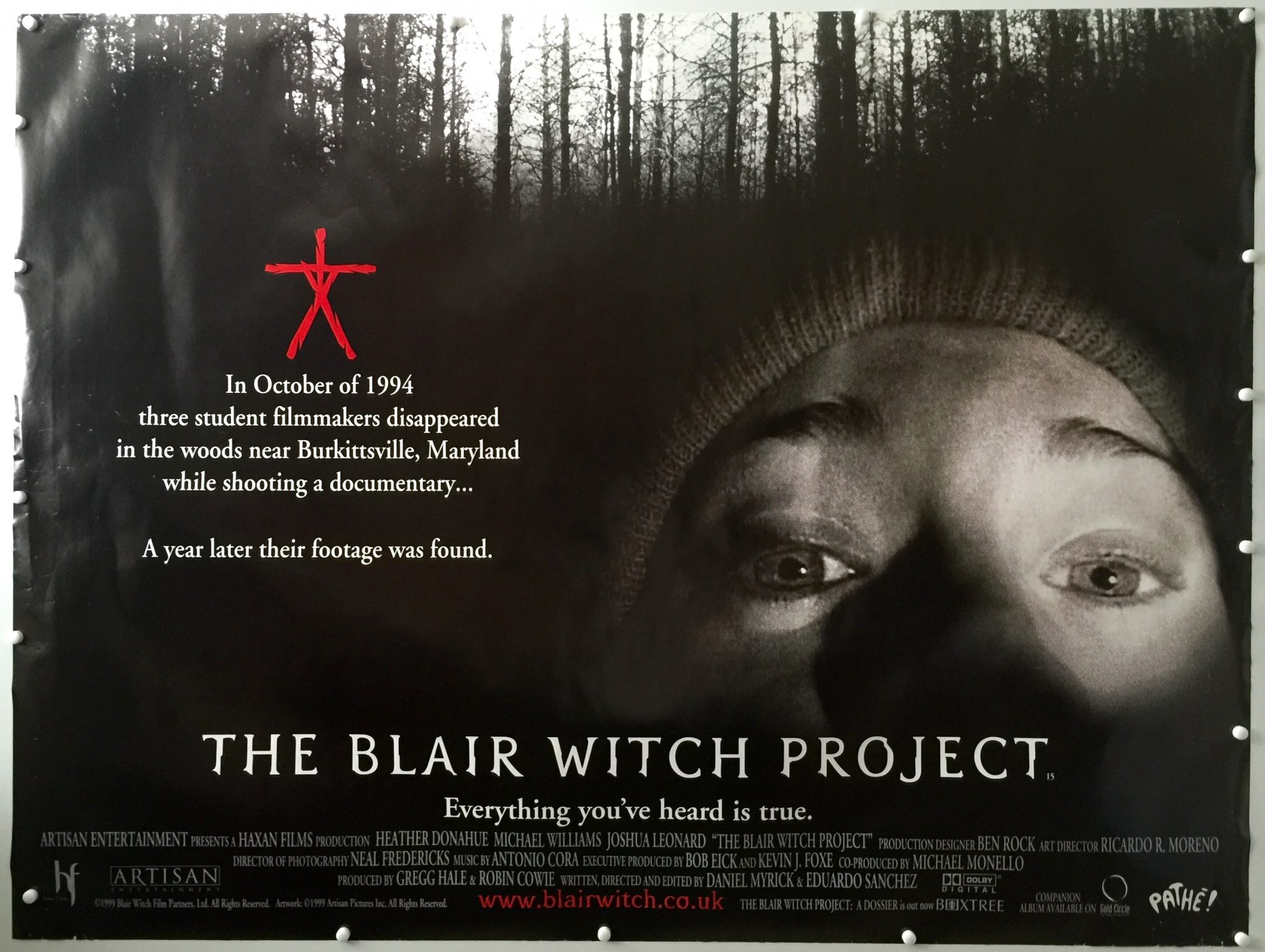Один из самых инновационных хорроров в истории. Фильм снят как найденная пленка, на которой трое студентов документируют свое путешествие в лес, чтобы расследовать легенду о ведьме. Они постепенно впадают в отчаяние, теряют связь с реальностью и исчезают.