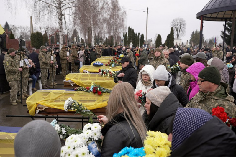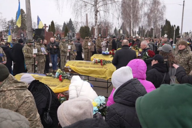 Люди на прощанні з невпізнаними бійцями. Суспільне Чернівці