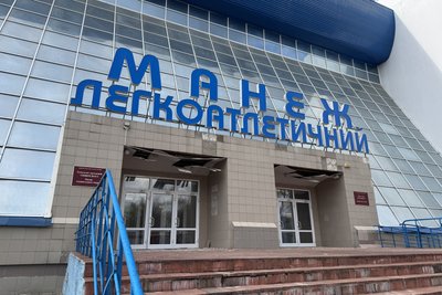 Вибита стіна у легкоатлетичному манежі СумДУ, Суми, 21 квітня 2026 року. Суспільне Суми
