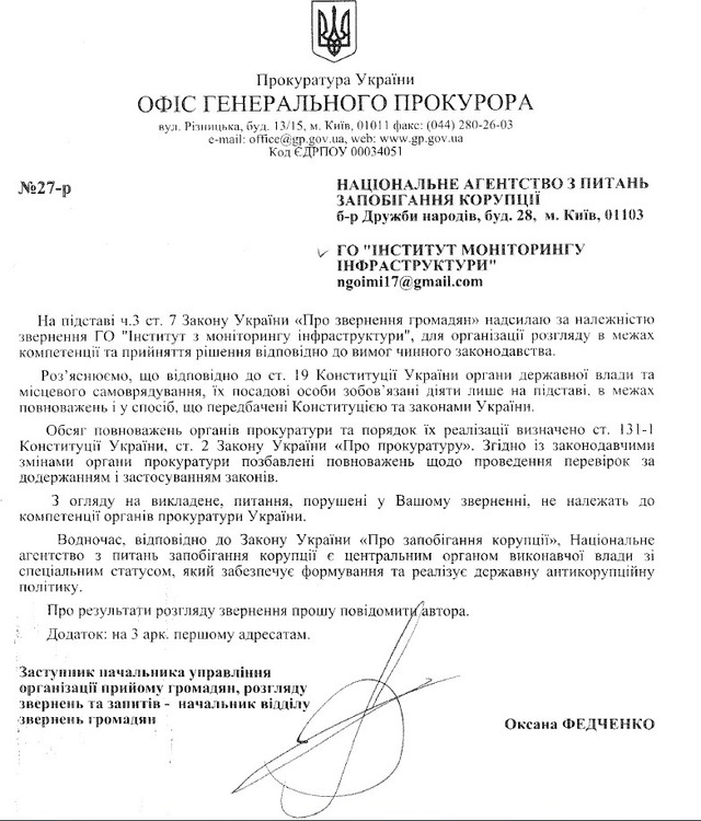 Про це стало відомо із офіційної відповіді Інституту моніторингу інфраструктури.