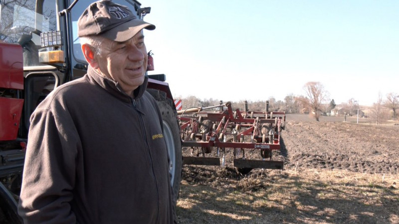 Працює на тракторі у полі 63-річний Олександр Дацюк. Чоловік обробляє 32 гектари поля. Разом з сином сіють сою, зернові, скаржиться на здорожчання пального.