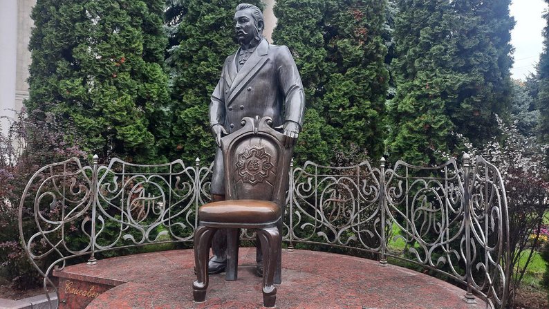 Пам’ятник колишньому міському голові Пашутіну в Кропивницькому (на спинці крісла вензель Єлизавети). Суспільне Кропивницький