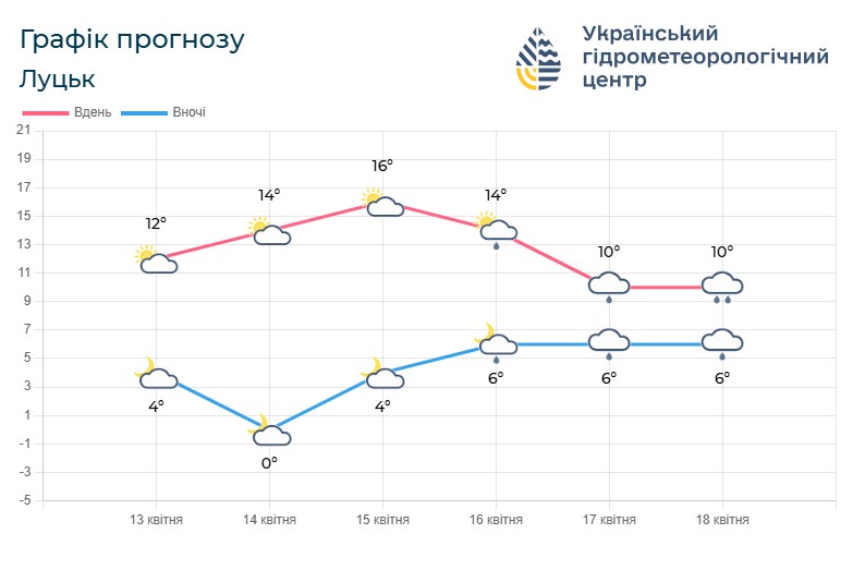Погода 13-18 квітня в Луцьку. Укргідрометцентр