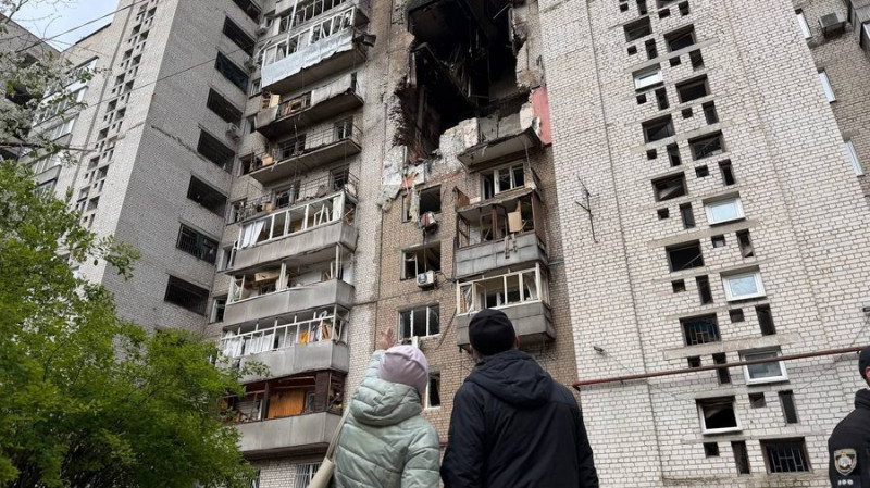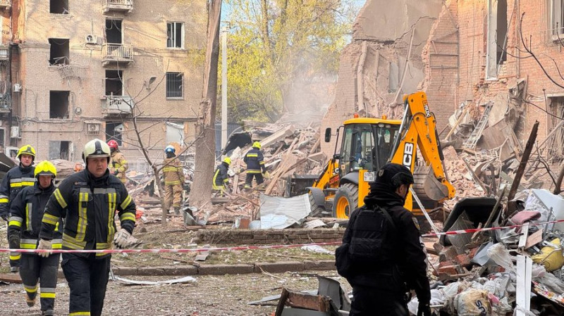 На місці влучання у чотириповерховий будинок, Дніпро, 25 квітня 2026 року. Суспільне Дніпро