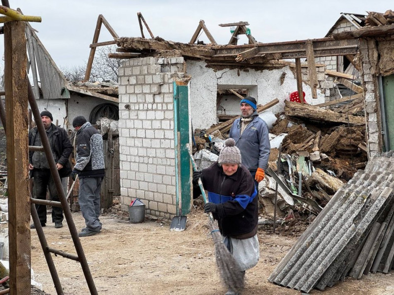 Місцеві лагодять пошкоджений будинок Людмили. Атака на Межиріцьку громаду, Дніпропетровщина, 8 грудня 2025 року. Суспільне Дніпро