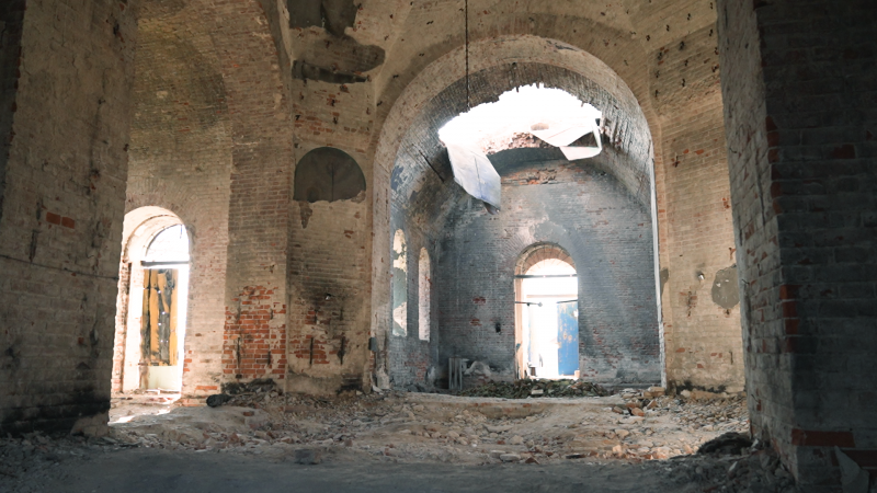 Всередині зруйнованої у 2022 році церкви у Лукашівці. 23 березня 2026 рік Суспільне Чернігів
