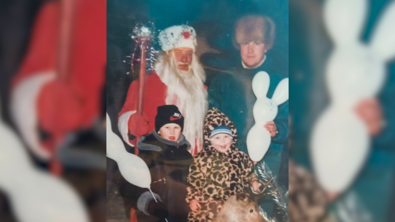 Юрій Ануля зі своїми синами у Чернігові на Красній площі на новорічні свята З особистого архіву Олексія Анулі