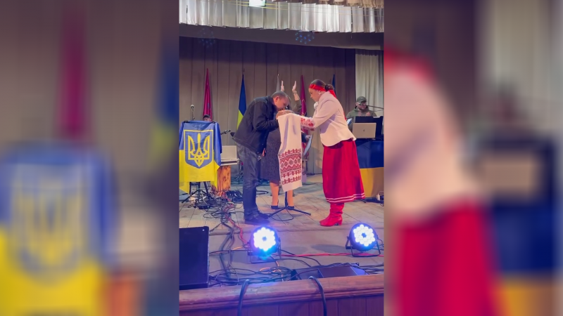 Миколі Мозілю вручають коровай. Скрин з відео у Facebook Костянтин Кирилюк