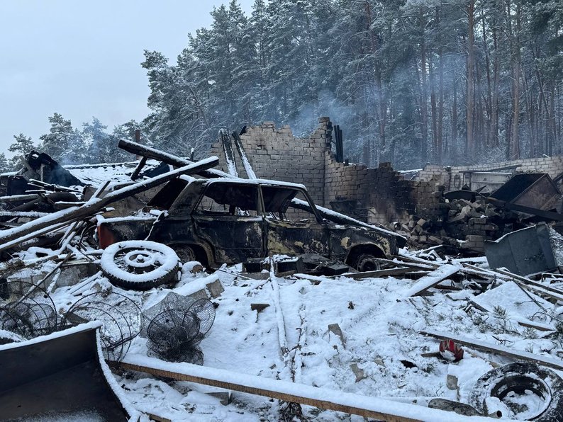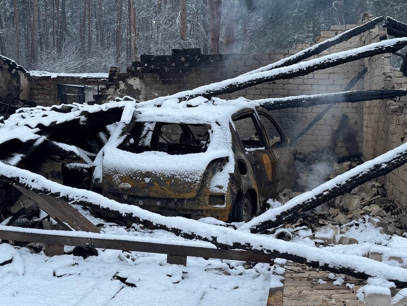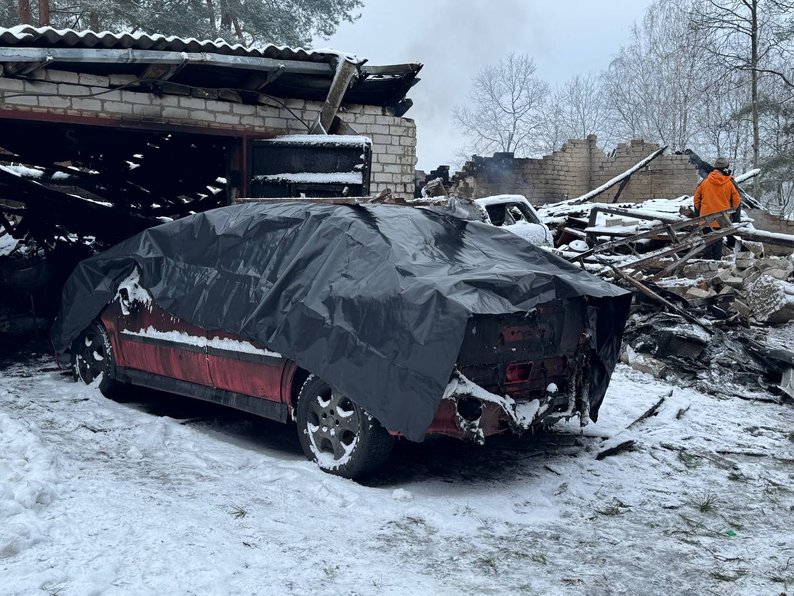 У Артема Кохана пошкоджені одразу два приміщення: один гараж, збудований вже під час повномасштабної війни майже повністю знищений. Чоловік говорить, вночі гуртом намагалися врятувати з вогню бодай якесь майно.