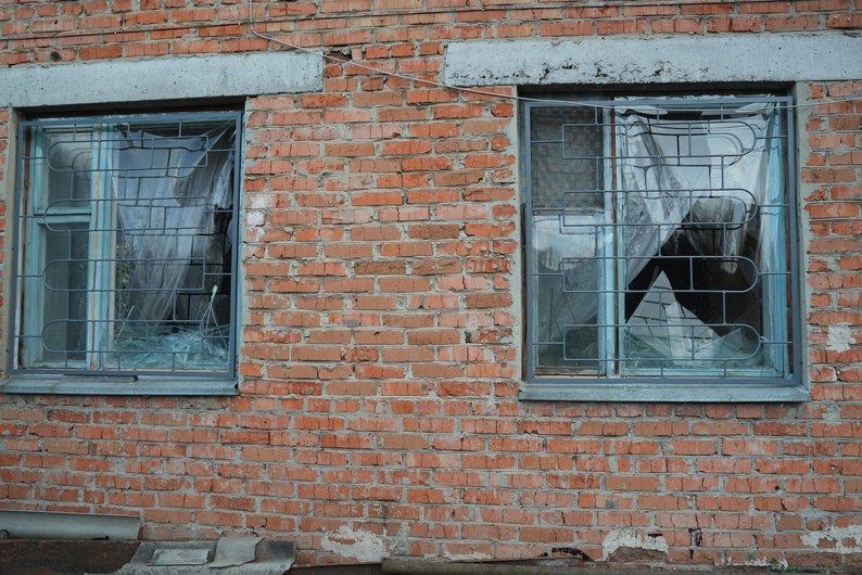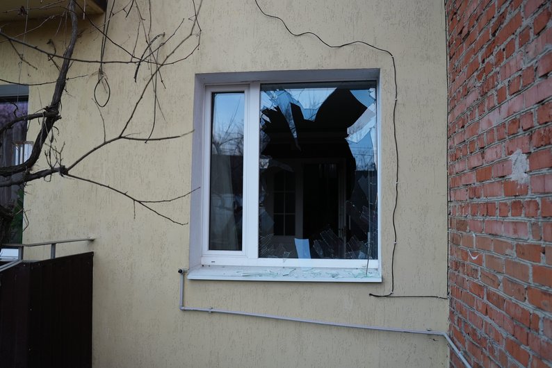 Пошкоджені вікна й у квартирі пані Наталії. Жінка звертає увагу, що зовнішня плівка на вікнах залишилася цілою, а скло вилетіло: "Тут у свекрухи старі вікна, це я з осені затягнула, ну все одно ж всередині скло все посипалося. Ну хоч не так холодно, воно ж хоч закрите трішки".