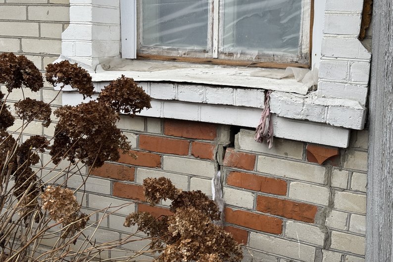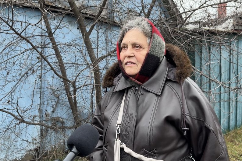 "Дерев'яна, а цеглою обкладена. Як вибухи — уся хата дрижить, кухня дрижить і явно видно на хаті, що уже відступ десь п'ять-шість см. Туди заходить холод. І вікно ж деформоване. На ніч я протоплюю. Зараз такого морозу нема. Але ж тієї температури нема, що треба. Усе виходить в оці дірки. Десь із рік оце вже. І воно все більше і більше. Було один сантиметр. Тепер уже десь сантиметрів на шість".