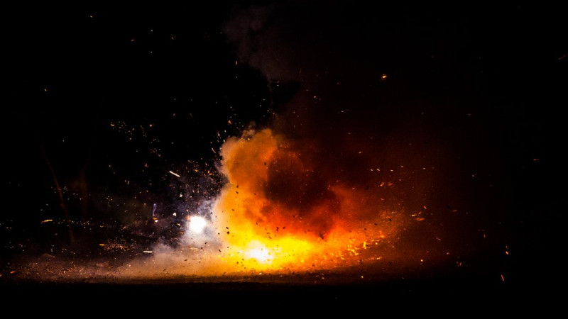 Вибух вночі у полі. Getty Images