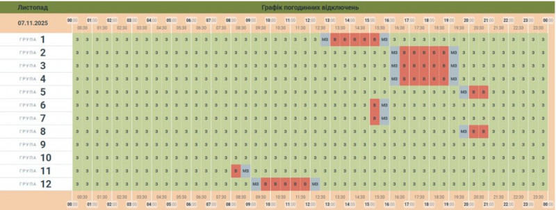 Графік погодинних відключень електрики на 7 листопада. АТ «Чернівціобленерго»