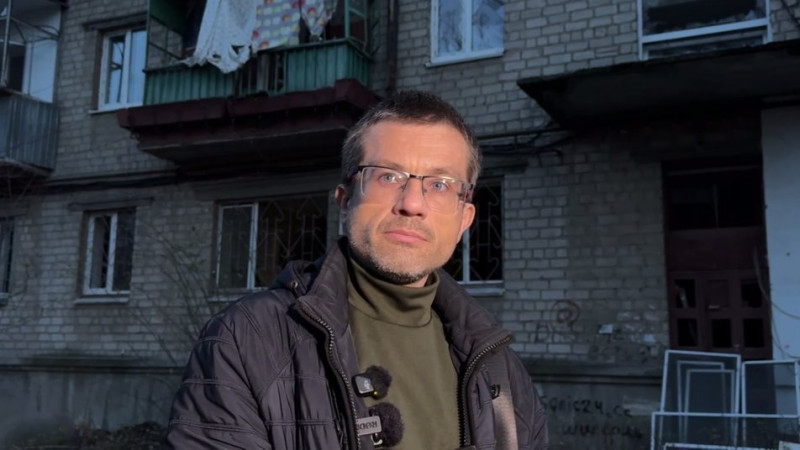Юрій живе в одному з пошкоджених через атаку РФ будинків. За його словами, в його квартирі після вибуху вилетіло скло.