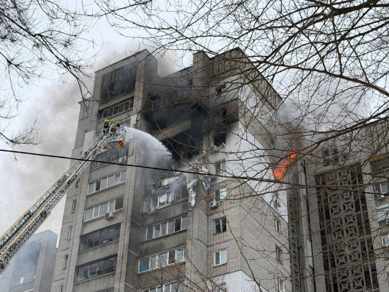 О 13:26 начальник обласної військової адміністрації Олександр Ганжа повідомив, що через влучання виникла пожежа у двох квартирах багатоповерхівки.