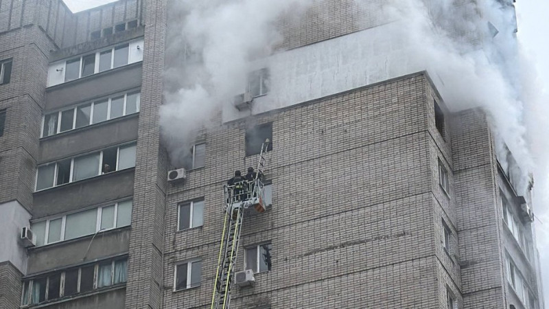 "На 14-му поверсі. Он вона спускається. Вона ціла, але пожежа ж. Повністю квартира горіла, вона не могла вийти. Вона виходила на зв'язок, потім перестала. Зараз зв'язку немає", — розповів чоловік.