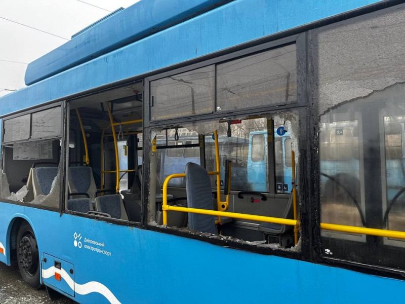 Вибите скло в тролейбусі внаслідок атаки РФ. Суспільне Дніпро