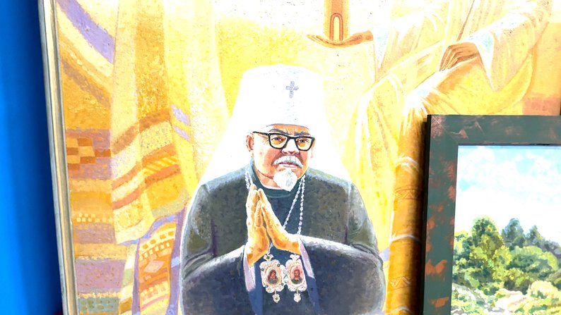 "Це картина "Духовні всесвіти Івана Огієнка". Я вивчав його творчість та життєвий шлях. і в мене виникла ідея написати картину про такого видатного українського вченого, поета, письменника. І от якраз випала нагода мені подарувати музею цю роботу", — розповів художник.