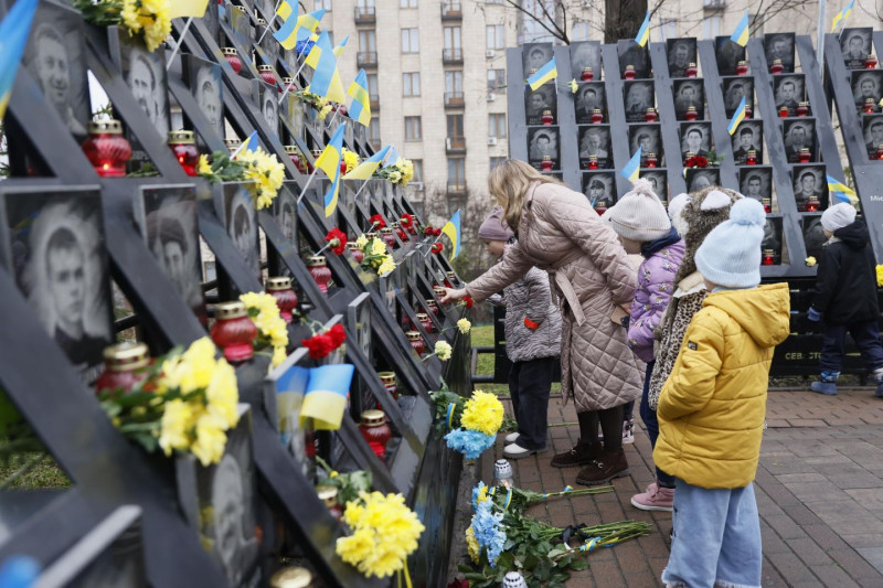 Протягом усього дня кияни безперервно кладуть квіти та запалюють лампадки, вшановуючи пам’ять полеглих Героїв Небесної Сотні. Цей живий потік людей став символом того, що День Гідності та Свободи — не лише офіційна дата, а справжнє свято пам’яті й відповідальності, яке об’єднує покоління та нагадує: боротьба за свободу триває.