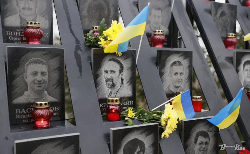 На Алеї Героїв Небесної Сотні кияни разом із представниками влади поклали квіти та запалили лампадки біля меморіального знаку загиблим.