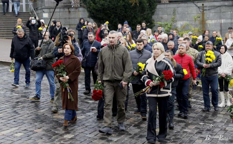 «День Гідності та Свободи — це нагадування про тих, хто боровся за свободу і гідність, хто заплатив найвищу ціну. Сьогодні ми бачимо багато квітів на Майдані Незалежності, люди приходять, щоб вшанувати пам’ять героїв. Але багатьох немає тут, бо вони нині зі зброєю в руках захищають нашу країну, наші європейські цінності», — зазначив у своїй промові київський міський голова Віталій Кличко.