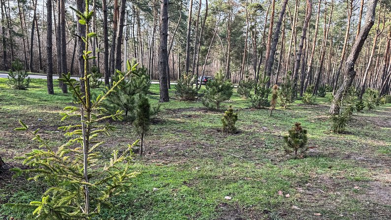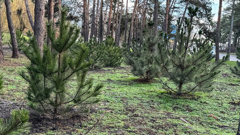 Саджанці сосни, висаджені у лісопарку «Сосновий» замість всохлих. Кропивницький, 25 листопада 2025 року. Суспільне Кропивницький