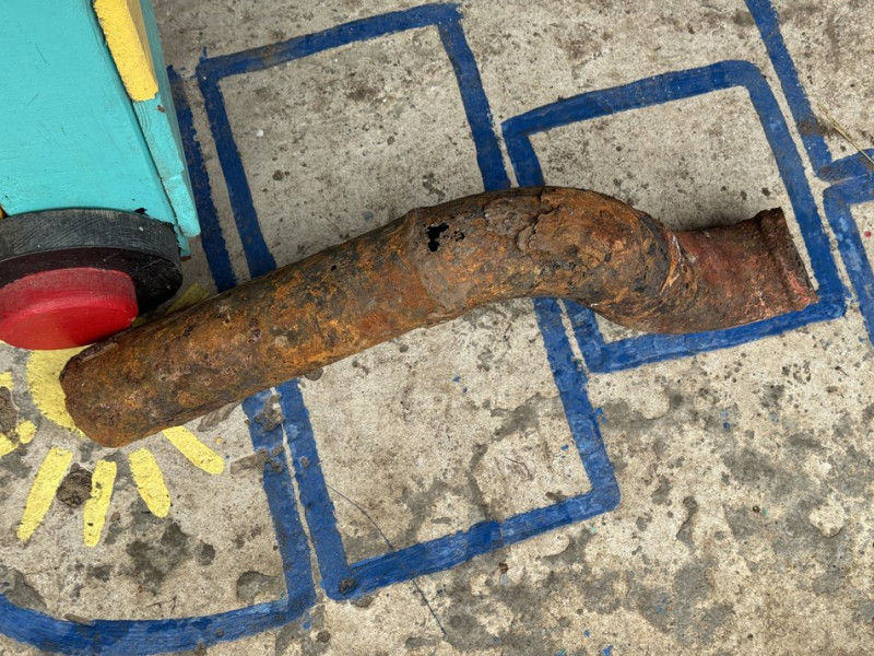 "Оце труба, по якій ішло опалення, тепла вода. Протягом п’яти-шести років вона струхла, потребує негайної заміни. Ось її стан який. І там зараз наразі всі такі труби, які потрібно замінити. Тут не те, що одна дірка, тут дірок, наче шашель побила. Корозія вже, дивіться, яка. Сантиметрів три вже корозії. Давним-давно вже ця проблема, треба було її усунути", — розпові слюсар-монтажник Євген.