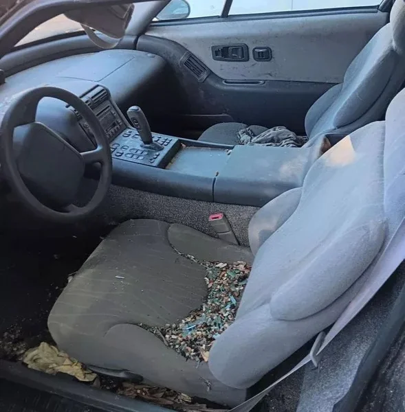 Електромобіль GM EV1 випадково виявили в місті Атланта, де він тривалий час простояв надворі. Він покритий шаром пилу та бруду, на кузові видно пошкодження, а лобове скло розбите. Авто не здатне пересуватися самостійно і його транспортували на евакуаторі.