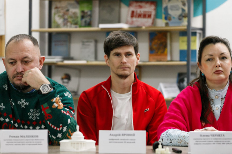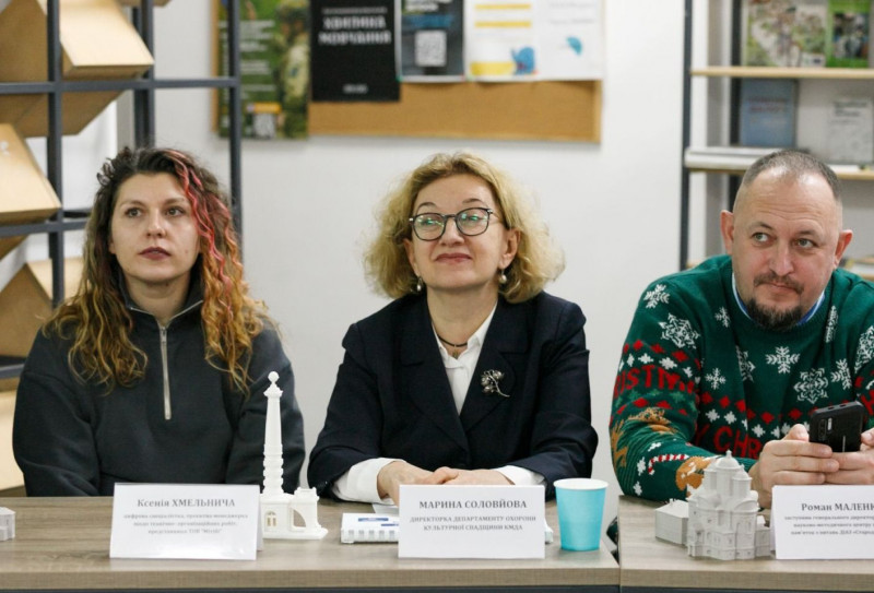 Марина Соловйова, Ксенія Хмельнича та Роман Маленков на презентації проєкту. Фото: Любов Голуб’ятникова / КМДА