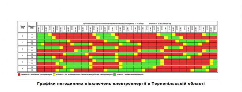 За інформацією: Суспільне Тернопіль. Графік відключень електроенергїі на Тернопільщині 12 січня 2026 року. Скрин