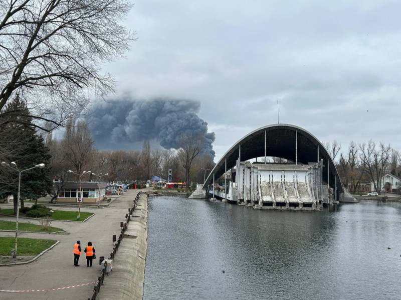 Станом на ранок, одну з пожеж гасять і досі. Міністр внутрішніх справ Ігор Клименко повідомив у своєму Telegram-каналі: внаслідок удару горять складські приміщення. Для ліквідації загоряння залучили гвинтокрил. На місці працюють 114 рятувальників та 35 одиниць техніки, зазначили ДСНС.