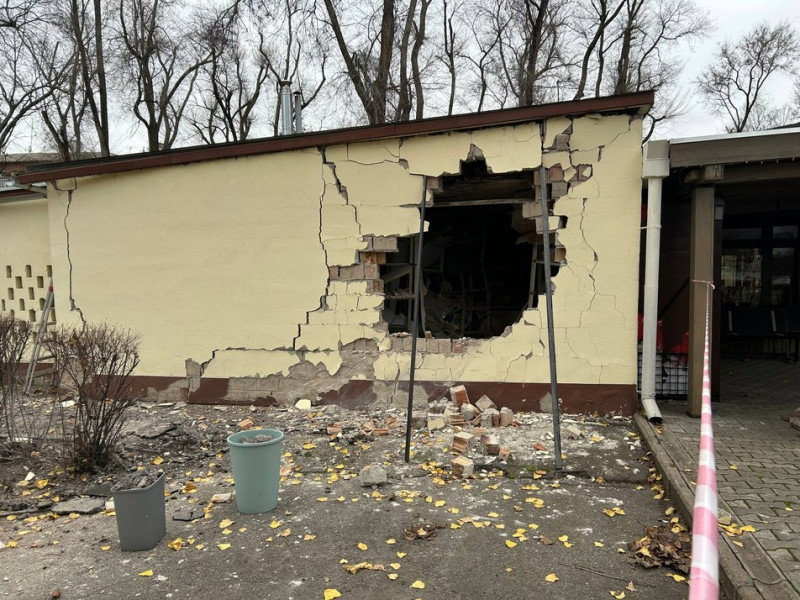 Будівля на території парку, яка була пошкоджена чеез атаку на Дніпро у ніч проти 6 грудня 2025 року. Суспільне Дніпро