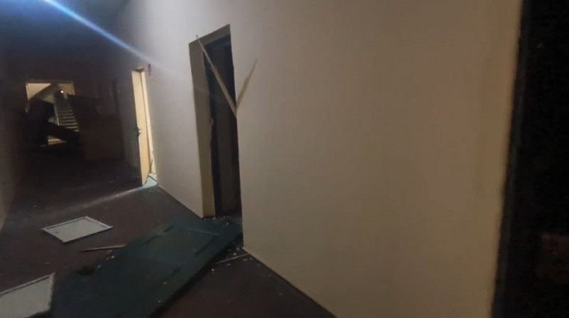 У будівлі вилетіли вікна і двері. Редакція Суспільне Дніпро внаслідок обстрілу міста. 17 листопада 2025 року. Суспільне Дніпро