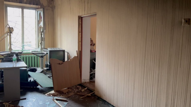 Менеджерка Суспільне Дніпро Катерина Лисюк розповіла: студія вигоріла повністю. Крім центральної будівлі пошкоджено також прибудову.