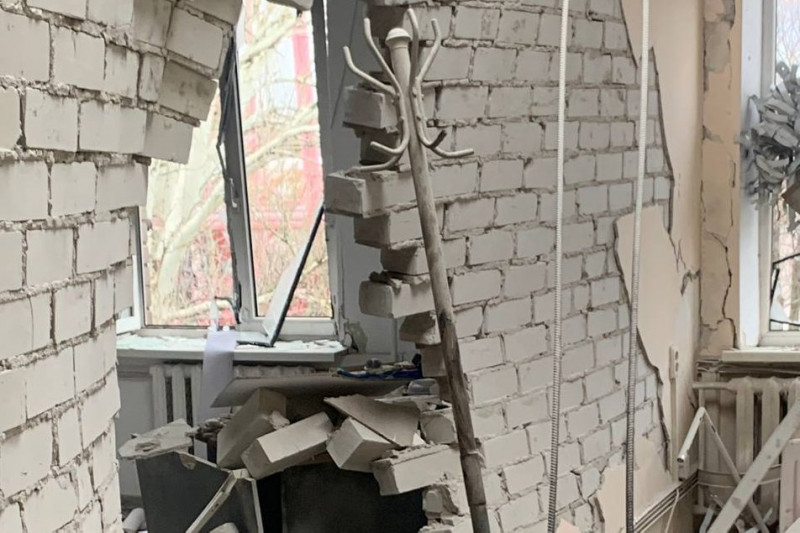 Стіна у будівлі редакції Суспільне Дніпро, пошкоджена через атаку РФ у ніч проти 18 листопада 2025 року. Суспільне Дніпро