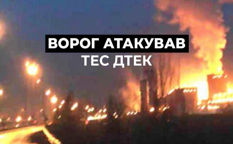 «Серйозно пошкоджено обладнання ТЕС. Працюємо над усуненням наслідків», — повідомили у ДТЕК.