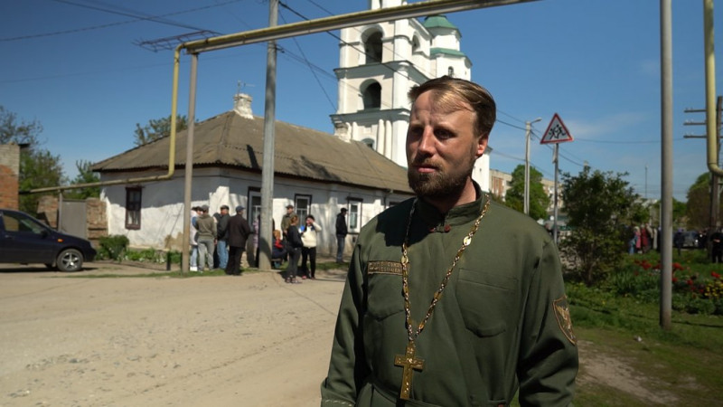 Священник Православної церкви України Отець Назарій сказав – віряни, що підтримують ПЦУ, не мають приміщення, де молитися. Тому у релігійні свята збираються біля місцевої адміністрації – просто неба. "Коли ти приходиш до храму, ти приходиш помолитися і відкритися Богу. А коли ти приходиш сюди – храм закритий. На воротах висить колодка, людей не пускають до храму", — розповів отець Назарій.