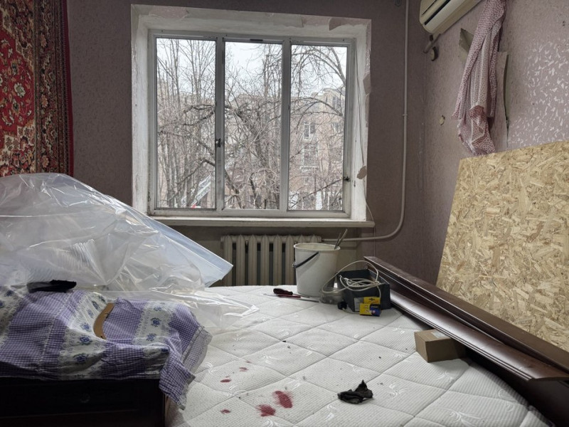 "Спалах такий був, все засвітилось. Вікна повиривало, все повибивало, по коліна скла. Мене врятувало, що я не дійшов до спальні, а от сусід зверху в мене, він в спальні був, але йому, я не знаю що, ногу відірвало чи поранило. Зараз поїхали в лікарню зʼясовувати. Жінка ридала, просила "швидку" викликати. Ми в квартирі своїй були, вікно забили, в кухні прибрали, ганчірками завісили. А в спальні вікно ціле, то ми там і переночували. Собачка перепугалася, але вона вже теж скільки разів це переносе. Газ є, світло є. Опалення нема, води нема, пообривало труби", — каже він.
