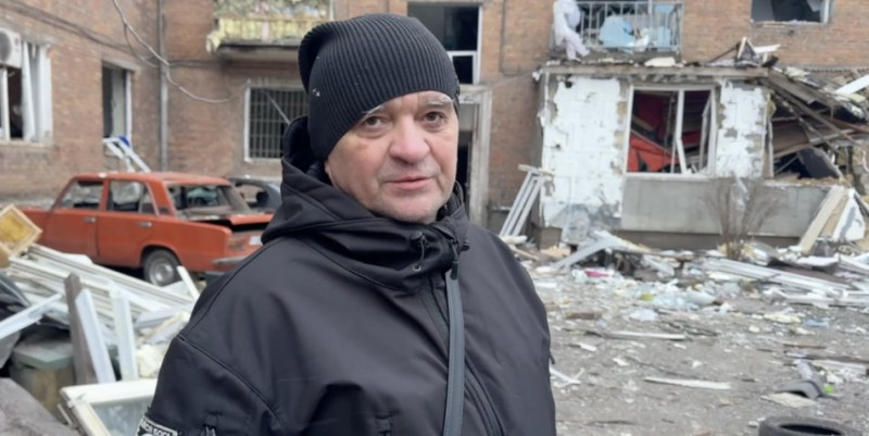 Сергій розповідає, у момент ударів був на роботі. Одразу прийшов допомагати родині.