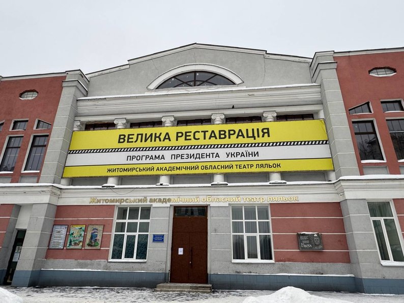 Заступниця начальника управління культури та туризму Житомирської обласної військової адміністрації Наталія Марчук розповіла кореспондентам Суспільного, що ремонтно-реставраційні роботи театру ляльок почалися в грудні 2021 року у межах програми "Велика реставрація". Роботи не змогли завершити через повномасштабне російське вторгнення у лютому 2022 року. За словами Наталії Марчук, до 14 січня 2026 року представники лялькового театру не зверталися до обласної ради щодо виділення коштів для завершення реставрації.