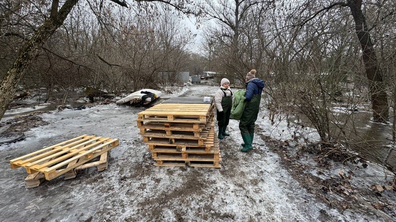 "Швиденько відносимо піддони, щоб собакам, яких не можна ніяк евакуювати (вони нікуди не йдуть і там сидять), робити високі острівці".