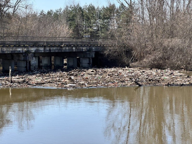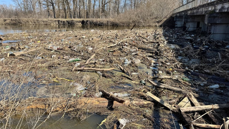 Кількаметровий затор з дерев та сміття на річці Ворскла біля автомобільного мосту. Суспільне Полтава